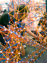 Die Studierenden nutzen bei Ihrer „öffentlichen Geometriestunde“ das Konstruktions-“Spielzeug“ Zometool. Es eignet sich erwiesener Maßen zur Konstruktion großer Modelle - vom platonischen Körper bis zum Hyperwürfel in der vierten Dimension. Im vergangenen Jahr hatten Mathematik-Studierende der Freien Universität Berlin bei einer ähnlichen Aktion mit 20.000 Teilen Deutschlands größtes Modell eines Platonischen Körpers im vierdimensionalen Raum gebaut.